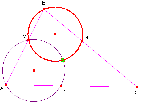 Por los puntos M, N, B y A, M y P pasa dos circunferencia