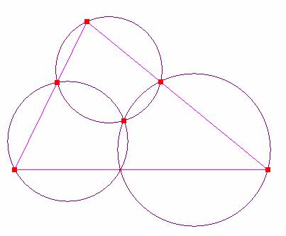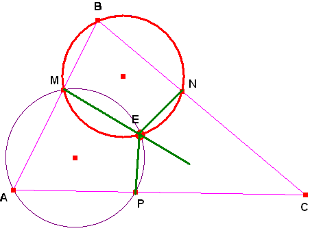 Finalmente el cuadrilátero PENC es inscriptible por lo tanto las tres circunferencias pasa por el punto E (denominado punto de Miquel)