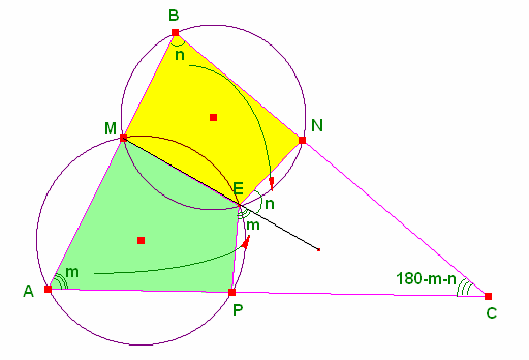 Ahora observamos que los cuadriláteros AMEP y MBNE son inscriptibles