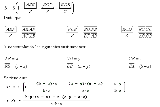 Si S´, es el área de DEF y S es el área de ABC respectivamente, se pide :
