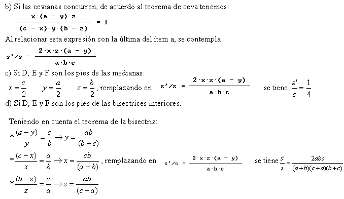 b) ¿Cuánto vale S`/S si las cevianas AD, BE y CF, concurren ?