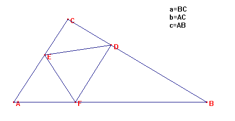 Sea ABC un triángulo de lados a=BC, b =AC y c =AB. Sea, DEF un triángulo inscrito en ABC, tal que los puntos D, E y F, estén respectivamente sobre los lados BC, AC y AB.
