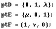Suponemos que los puntos D, E, F dividen a los segmentos BC, CA, AB en las razones l:1, m:1, n:1. Esto quiere decir que los puntos D, E y F tienen coordenadas baricéntricas