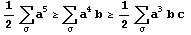 En términos de sumas simétricas (donde los índices recorren las permutaciones de las letras a, b, c)