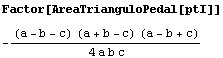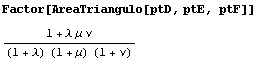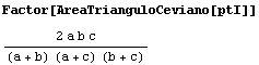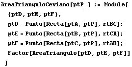 Recordemos que la función AreaTriangulo definida en Baricentricas.nb calcula precisamente este cociente.