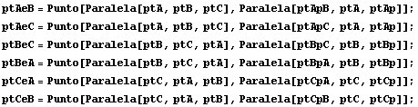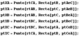 Calculamos los puntos A'(B), B'(C), C'(A) como los simétricos de A'(C), B'(A), C'(B) respecto de A', B', C'.