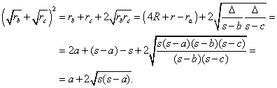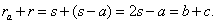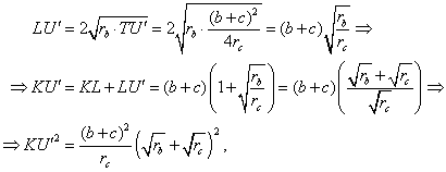 El radio de inversión es KL = KB + BC + CL = (s - a) + a + (s - a) = 2s - a = b + c. Entonces,