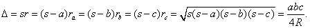 En cualquier triángulo el área D se expresa mediante las fórmulas: