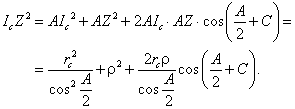 Aplicando el teorema del coseno al triángulo IcAZ,