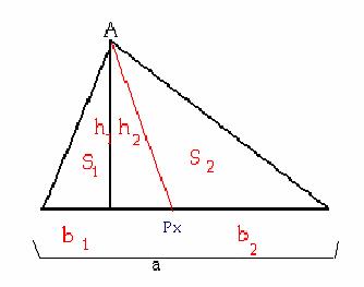 coger un punto diferente para cada relación de áreas y unirlo a un vértice.