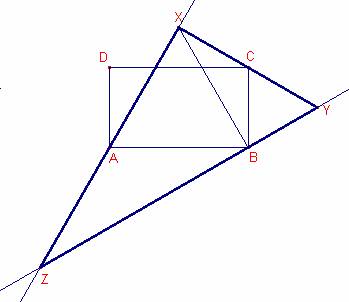 Dado el rectángulo ABCD, con a =AB (base) y b = BC ( la altura), y a>b desde la base AB se construye internamente el triángulo equilátero ABX, y desde la altura, b= BC, se construye exteriormente un triángulo equilátero BCY. Las rectas AX y BY se cortan en Z.