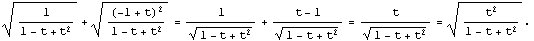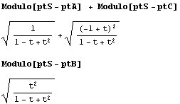 La igualdad SA + SC = SB se cumple porque, al estar Q en la prolongación de AC, es t>1, y por tanto también es
