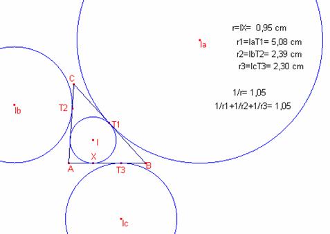 Proporción entre los radios de las circunferencias inscritas y exinscritas.