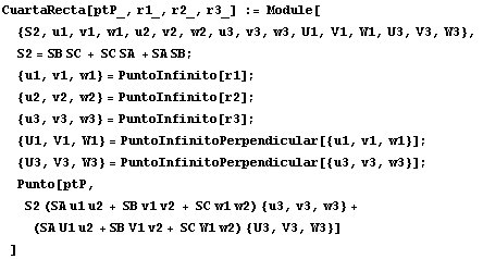Dadas las ecuaciones baricéntricas de tres rectas r1, r2, r3 obtener la ecuación de una cuarta recta r4 tal que los ángulos orientados Ð(r1, r2) y Ð(r3, r4) son iguales.