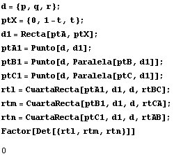 Para resolver nuestro problema usamos la función de esta manera: Tomamos una recta cualquiera d y un punto cualquiera X sobre la recta BC. La recta d' será la recta AX.