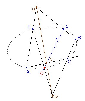 Si la cónica pasa por los puntos A, B, C, A', B' y queremos hallar el otro punto C' en que corta a la cónica una recta que pasa por A, podemos considerar lala homografía que lleva A, B, C en A', B', C'. Entonces los tres puntos
