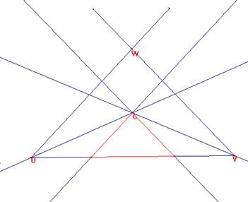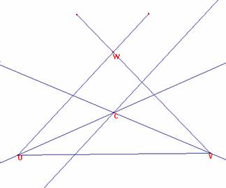 Por C tracemos paralelas a UW y a VW, que cortarán a UW en A y B.