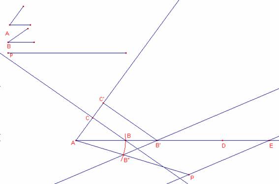 el arco de circunferencia de centro A que pasa por B”. Este arco corta la semirecta r en el punto B.