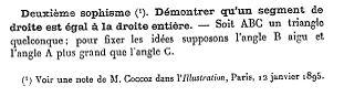 Segundo sofisma. Demostrar que un segmento de un lado de un triángulo es igual al lado completo. Sea ABC un triángulo cualquiera; para fijar ideas supongamos que el ángulo B es agudo y el ángulo A es mayor que el ángulo C |