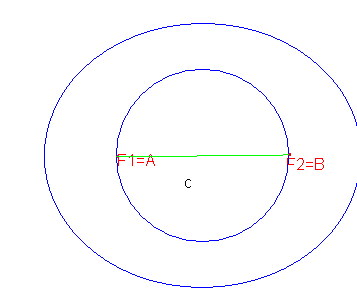 Tracemos ahora la elipse cuyos focos son los extremos del diámetro y cuyos radiovectores son la mitad de a+b: