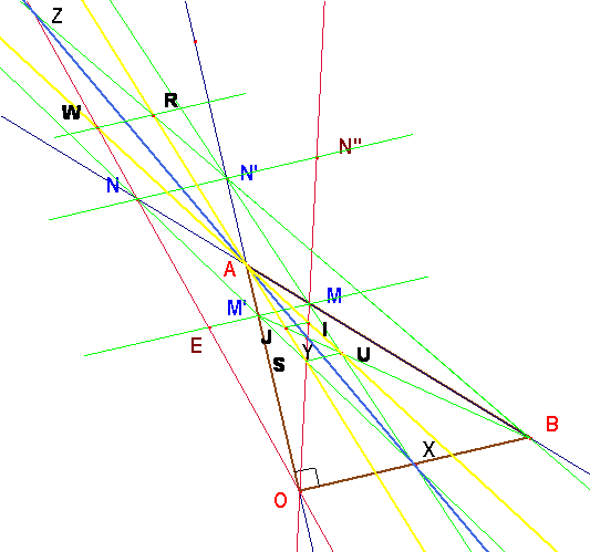 (N,N’) y (O,B) definen rectas concurrentes en el punto del infinito del lado OB. De ahí que el punto común a MN’ y M’N, el punto A, sea fijo