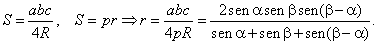 Entonces podemos calcular De la misma forma podemos calcular Ahora, usando las fórmulas del área del triángulo expresamos Puede comprobarse, por multiplicación, que esta expresión de r es equivalente a y, usando el Lema 3, obtenemos que |