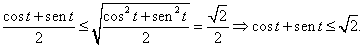 p/2, se cumple la desigualdad En efecto, como en el intervalo considerado tanto el seno como el coseno son no negativos, podemos usar la desigualdad entre las medias aritmética y cuadrática, para obtener