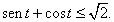 La igualdad se cumple cuando el seno y coseno son iguales, es decir para t = p/4. |