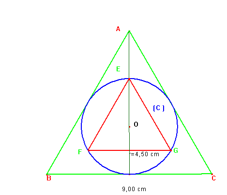 circunferencia inscrita, cuyo centro es el baricentro O. La altura de EFG es ¾