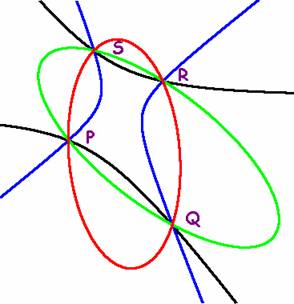 cónica y considero el haz de cónicas que pasan por los cuatro puntos. En este