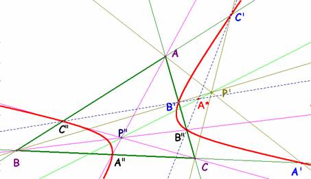 determinar una cónica, esa cónica es la misma que la que pasa por A’, B’, C’, A”, B” y C”. El punto C” ha de