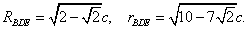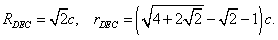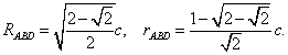 Los triángulos ABD y BDE son rectángulos, así que podemos calcular R y r sabiendo que para un triángulo rectángulo con catetos x e y e hipotenusa z es R = z/2 y r = (x+y-z)/2. Así tenemos, para ABD y BDE:
