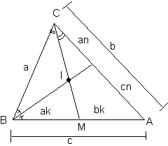 T de la bisectriz en BCA K(a+b)=c