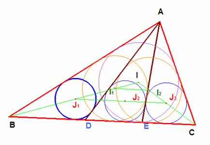 forman los triángulos ABD, ADE, AEC (no solapados) cuyos incirculos son