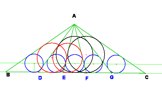 En la última figura hemos puesto cinco triángulos yuxtapuestos de igual inradio e igual altura desde A.