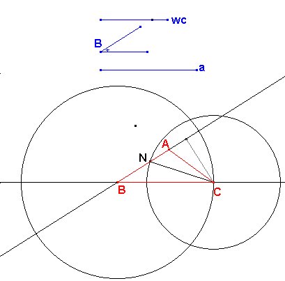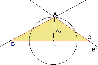 Construir un triángulo conocidos la longitud del lado a, el ángulo B y la medida de la longitud de una de las bisectrices interiores wa ó wc. |