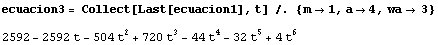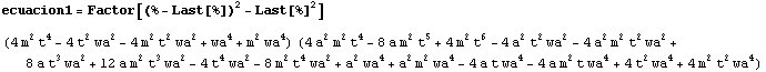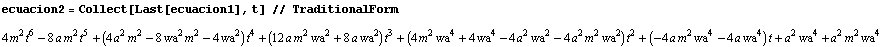 El factor que nos interesa es el último, el primero ha aparecido al elevar al cuadrado, observemos que en él no aparece a). Entonces el polinomio del cual t es solución es: