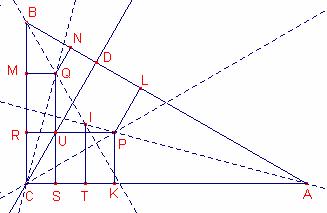 Los círculos de centros P, Q e I están inscritos en los triángulos ACD, BCD y ABC, respectivamente.