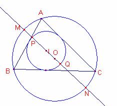 Els diàmetres comuns a les circumferències inscrita i circumscrita passen per O i I.