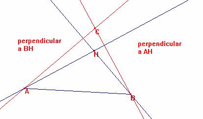 a) Si H está sobre el propio segmento AB o sobre la recta que lo contiene, se tiene que AH y BH se cortan dando como lugar geométrico la misma recta que contiene a AB y por tanto sería indeterminado. Las perpendiculares por A a BH y por B a AH serían paralelas, por lo que no habría triángulo.