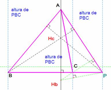 Por último, la altura desde P de PBC es la altura desde A de ABC.