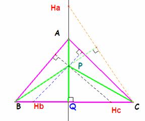 1. Los puntos Ha, Hb y Hc nunca están alineados, a menos que P esté sobre uno de los lados del triángulo ABC.