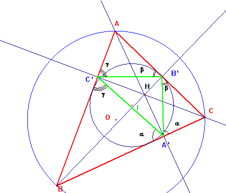 se podía obtener a partir del ángulo del triángulo órtico en C’ que es 180-