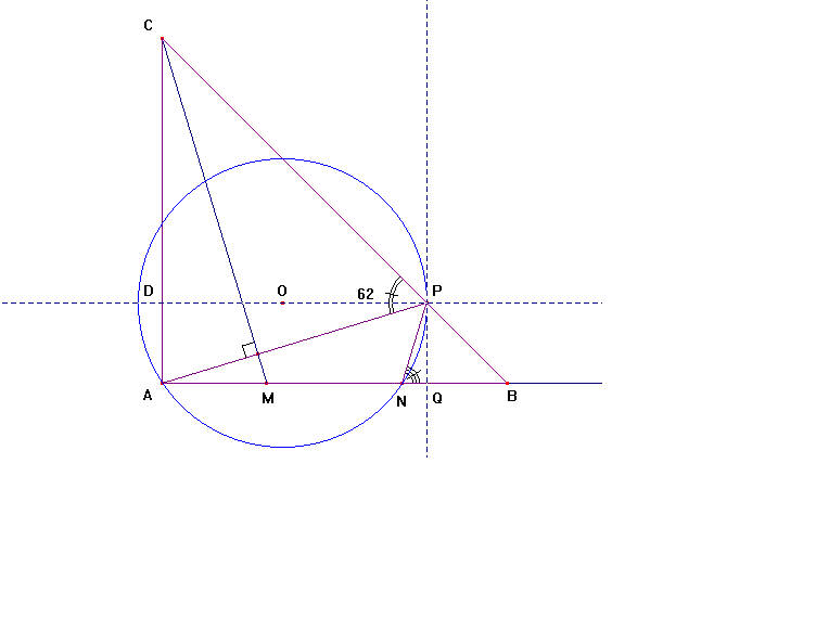 Se nos pide el ^PNB. ^PCM=90º - 62º = 28º y ^MCA=45º - 28º = 17º que por lados perpendiculares es lo que vale también ^PAB.