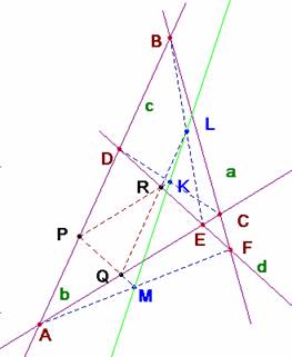 En un cuadrilátero completo a, b, c, d, están alineados los puntos medios de sus segmentos diagonales (=formados con dos vértices opuestos).