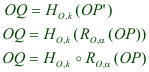 0.2 Todo punto del plano puede ser considerado como perteneciente a uno de los dos sistemas (original y transformado); y en consecuencia tendrá su homólogo en el otro. Considerado el centro de rotación desde este punto de vista, será su propio homólogo (punto que se corresponde a sí mismo) y a causa de ello podemos denominarlo también el punto doble de la transformación. Igualmente se puede imaginar que todo el plano gira en torno a O de tal manera que uno de sus puntos recorre une curva dada. Si el sistema completo de puntos del plano conserva su forma durante el movimiento, uno cualquiera de sus puntos describirá una curva semejante a la curva dada. | |||