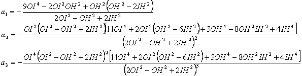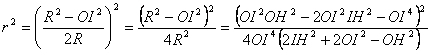 Nuestro objetivo es ahora expresar R, r y s como funciones exclusivas de OI, OH e IH. Después de manipular algebraicamente las relaciones [1], [2] y [3] ya demostradas, llegamos a