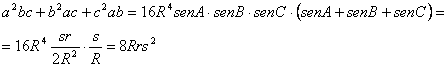 La última igualdad resulta de sustituir las expresiones previas por las ya determinadas en función de R, r y s. Es fácil también verificar la siguiente relación, sin más que utilizar la expresión [5] y el resultado anterior
