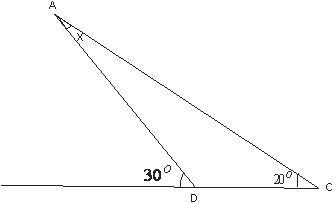 Y finalmente en el triángulo ADC por ángulo exterior se tiene que: 20º + X = 30º