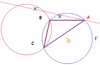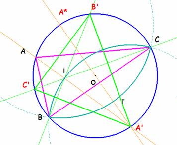 con la mediatriz del lado opuesto en la circunferencia circunscrita. El otro A*, está sobre la bisectriz exterior de A. Así pues tendremos los puntos A’ y A*
